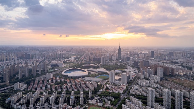 奥体中心、传媒大厦日夜过渡