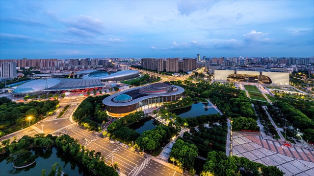 奥体中心、传媒大厦、文化广场火烧云
