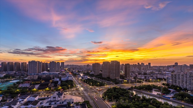 添加到收藏 加入购物车 下载小样 复制编号 「天宁」同济桥晚霞 日转夜亮灯